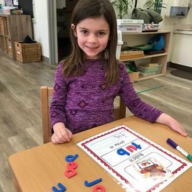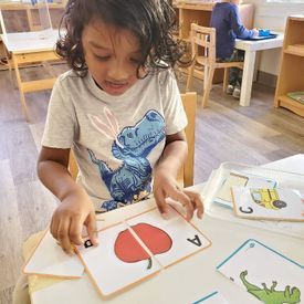 The children learn to read through a series of graded exercises and activities. In the first stage, they learn phonic sounds through various fun activities, recognizing and associating letters with phonic sounds. They then start reading, building and blending words and eventually progress to Consonant Digraphs and Vowel Digraphs. The last stage of reading is the introduction to Early Grammar, Comprehension and Creative Writing. All activities are done with concrete manipulatives that can be felt and touched.