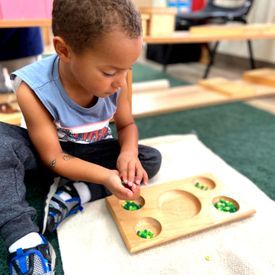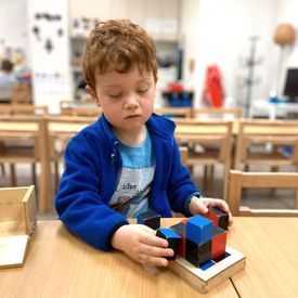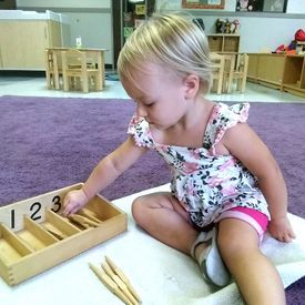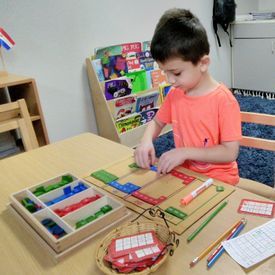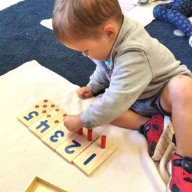 “The Montessori child does not learn math, h/she experiences it.” The Montessori Mathematics apparatus serve as a concrete method where the children learn concepts of mathematics by working on tangible mathematics. A child begins learning mathematical concepts through the use of concrete mathematical material such as the Number Rods, Sandpaper Numbers, Beads, Symbol Cards which familiarize the child with the decimal system.