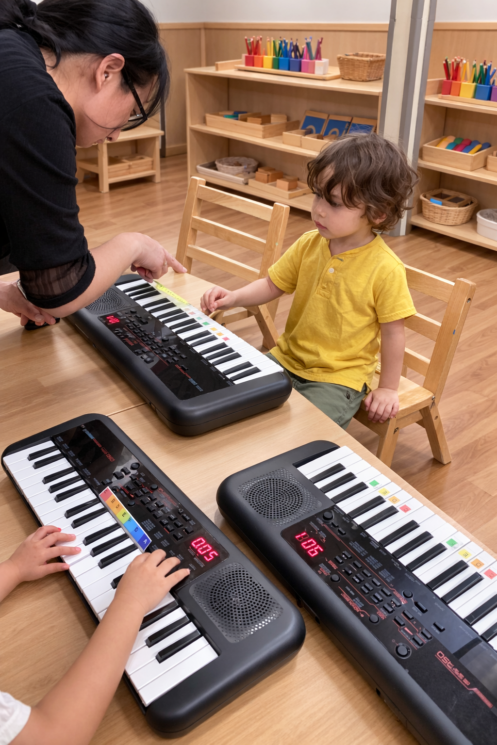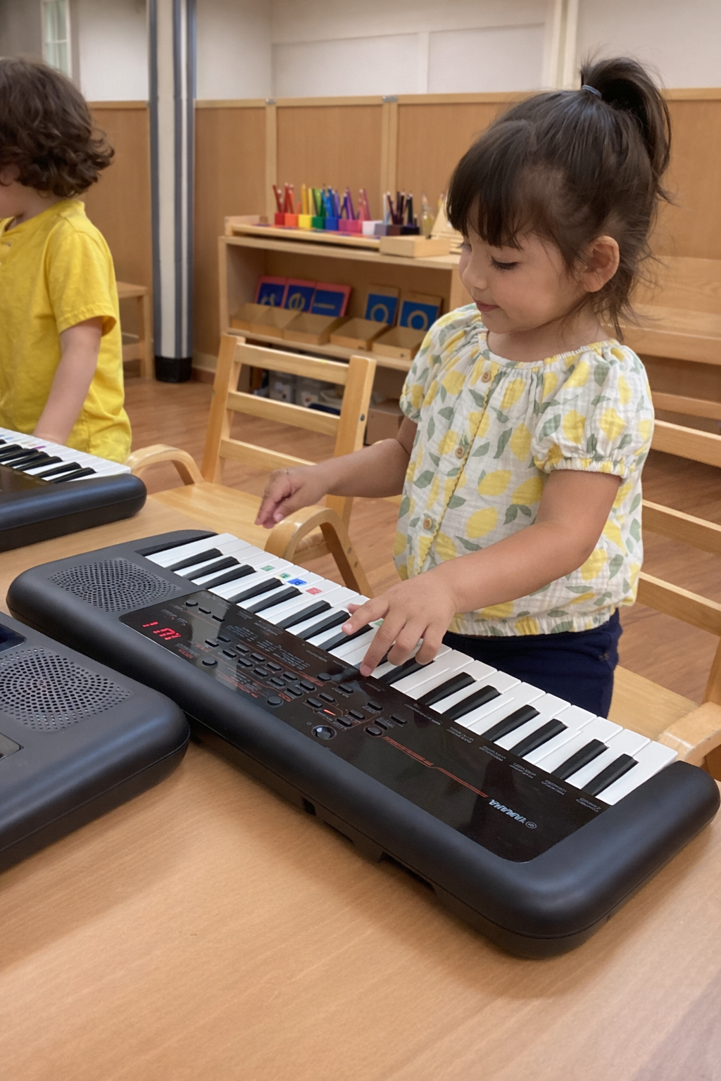 Our Piano Program with Teeny Fingers is led by Ms. Monan, a familiar and trusted instructor within our school community. This thoughtfully designed program introduces children to music in a warm, engaging environment, nurturing focus, coordination, and a lifelong appreciation for rhythm and melody. Through playful exploration and gentle instruction, children build foundational music skills while developing confidence and creativity.