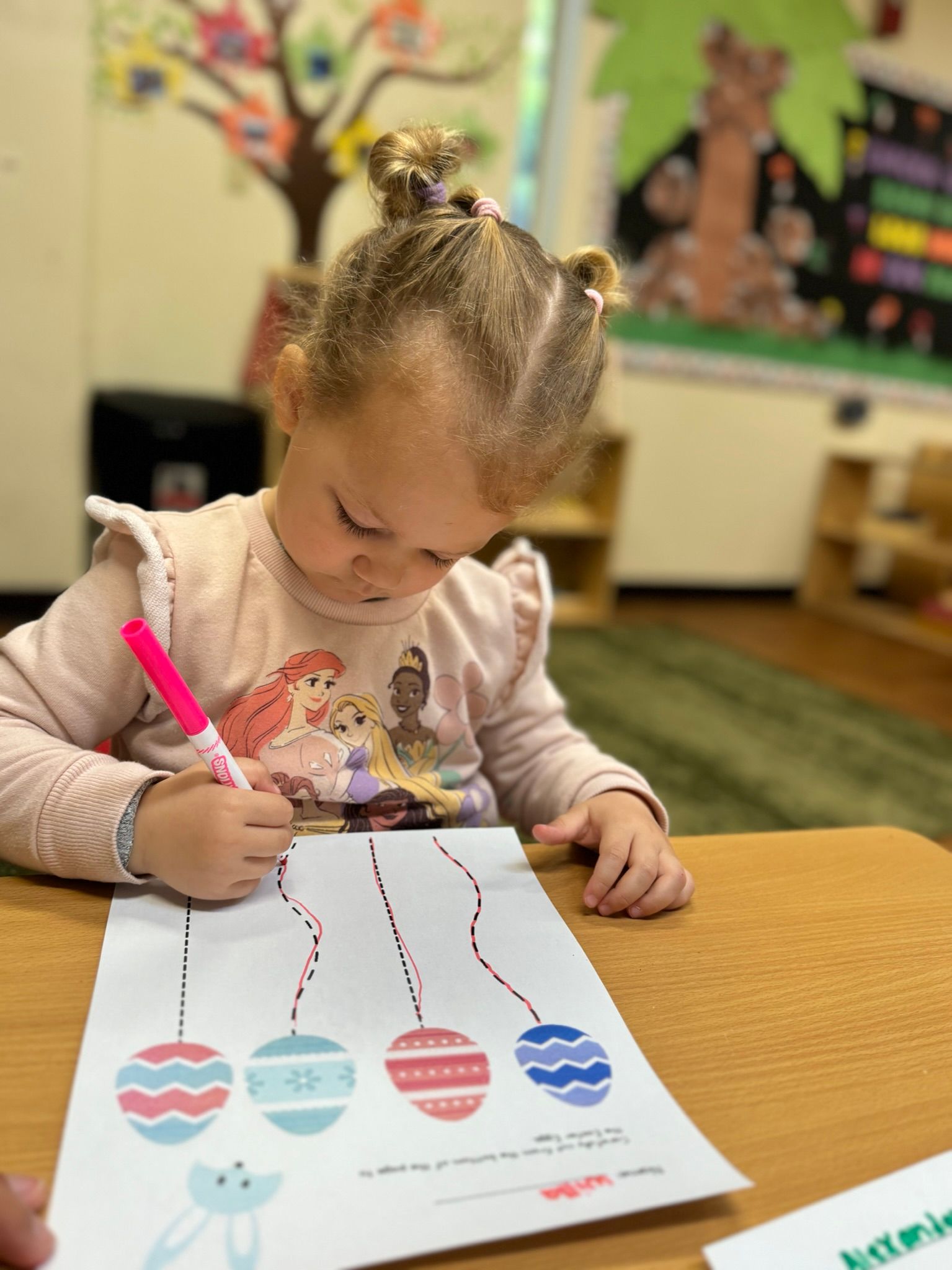 During the Montessori period, the children sorted bows, placed ornaments on a miniature tree, placed wooden candles on a menorah, and learned how to spin a derided. We also read the book of the month daily: The Giving Tree by Shel Silverstein. The children understood that the tree is like our parents; we need to appreciate everything given because they will do anything to make us, like the boy, happy and thankful for that.
